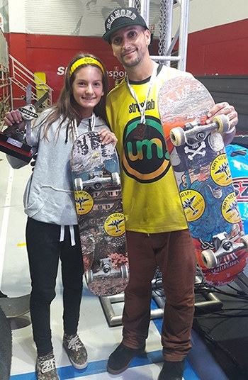 Pai e filha entre os competidores da 4ª etapa do Circuito Paulista SESI-SP de Skate,