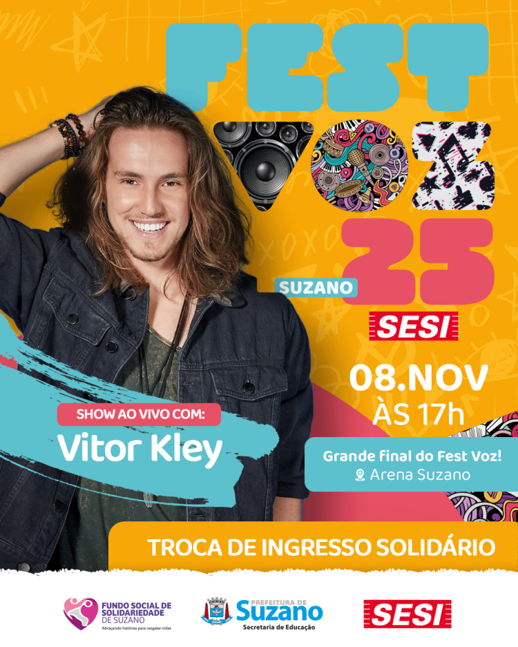 A grande final do festival será marcada pelo show gratuito do cantor Vitor Kley, que se apresentará ao vivo na Arena Suzano, no dia 8 de novembro, a partir das 17h.
