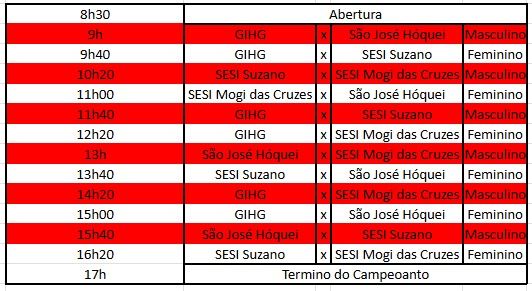 Nessa etapa, quatro equipes disputarão partidas nas categorias masculina e feminina, reunindo participantes de todo o Estado. As equipes serão do SESI Suzano, SESI Mogi das Cruzes, Grêmio Interlagos de Hóquei e São José Hóquei.